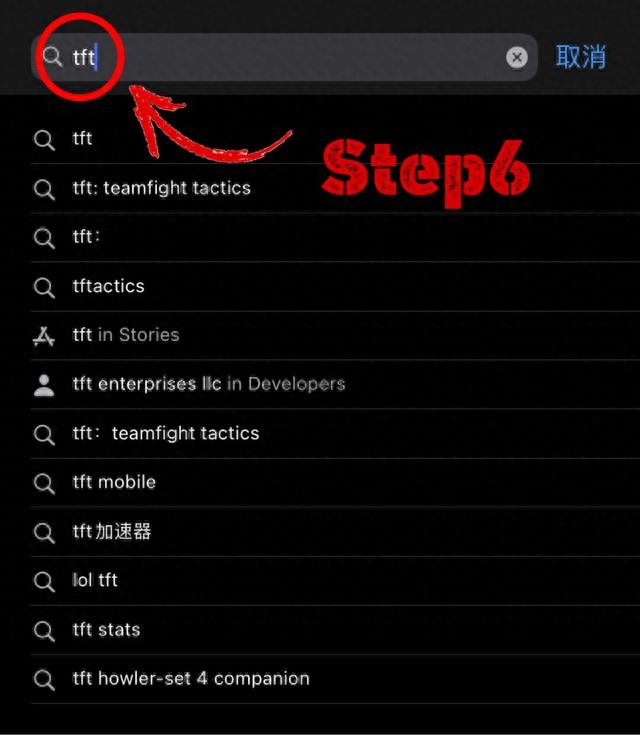 第六步系统已经自动转换到美服,点击搜索,输入TFT。