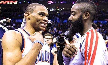 效力于雷霆时期,哈登最好的好友就是威少,即使所有人都在质疑威少打法太毒,哈登也一直站在好友威少一边,即使后来因600万差价被雷霆无情抛弃,哈登也一直与威少保持着密切联系。