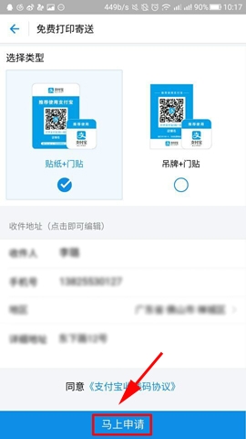 支付宝收钱码贴纸怎么申请