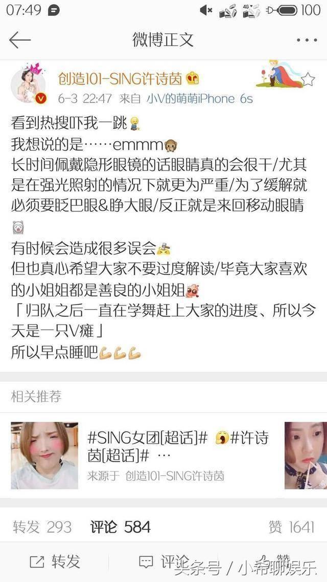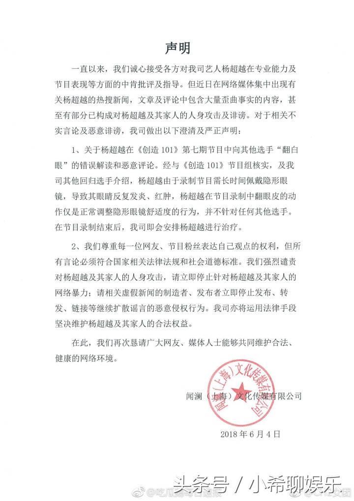 杨超越公司回应“翻白眼”是因为隐形眼镜?淘汰选手发文力挺超越