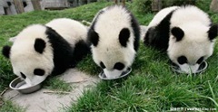 大熊猫曾经是吃肉的,不过经过进化后,现在99%的大熊猫都吃的是竹子,不过消化系统和牙齿还是没变的,现在的大熊猫依旧被归类为食肉型动物,因为竹子提供的热量比较少,因此我们就在动物园里看见的大熊猫不是在睡觉就是在吃竹子,这完全就是饿的。