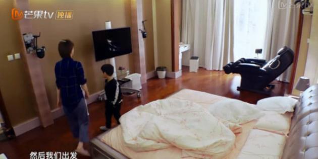 而在最近一期节目中,黄圣依的卧室内景也首次被曝光。视频中,卧室里一张双人大床,一个不是很大的电视,两个梳妆台,还有一张按摩椅,装修简约而不失奢华。