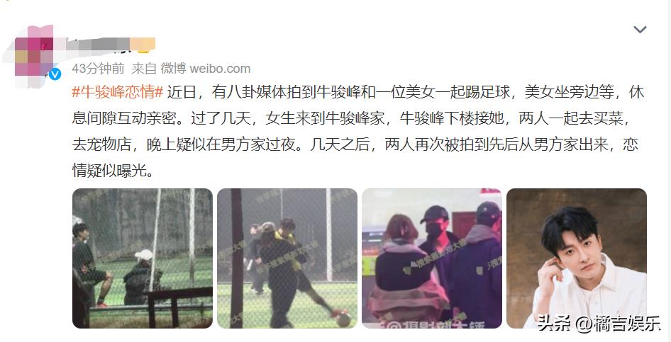 牛骏峰恋情曝光,两人一起踢足球互动亲密,晚上疑似在男方家过夜