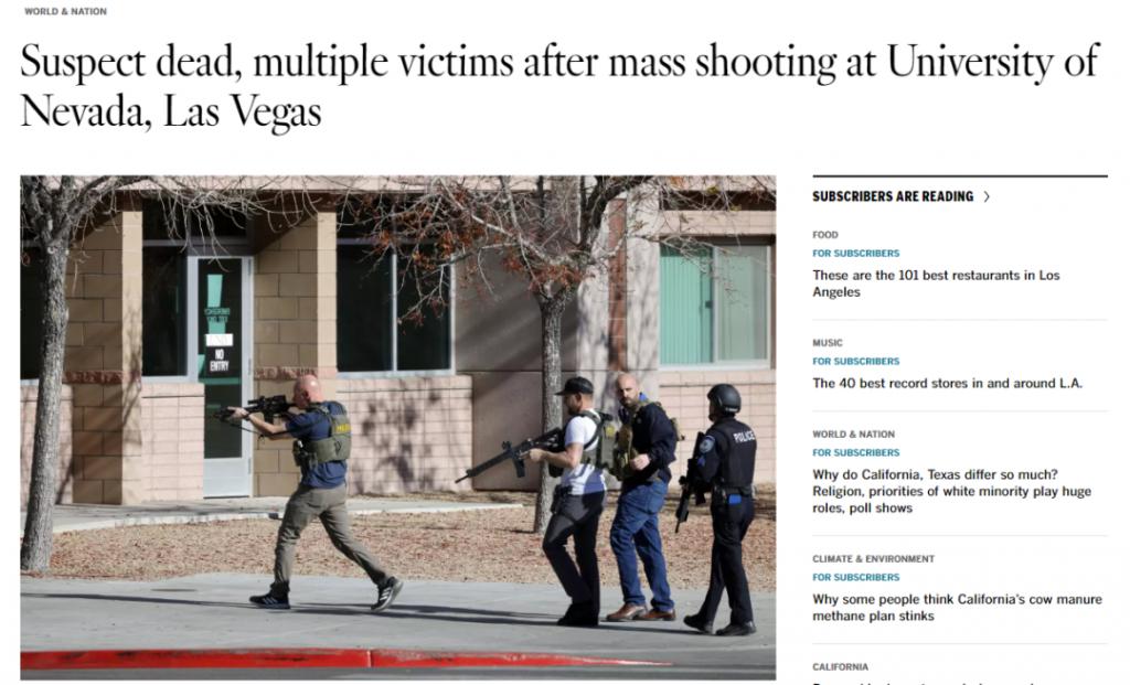 美国内华达大学突发枪击案,多人死伤