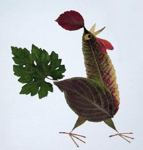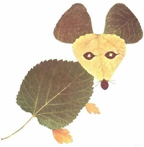 3.构图和定名:构图,是制作叶画关键的一步。叶画的内容非常广泛,但要注意构图的合理、巧妙和新颖。每片叶都可正放、倒放、斜放、互相遮掩,事先要考虑好。“剪树叶”可不像是用“笔”来画图的效果,不能任意剪,相反就不能成形了!