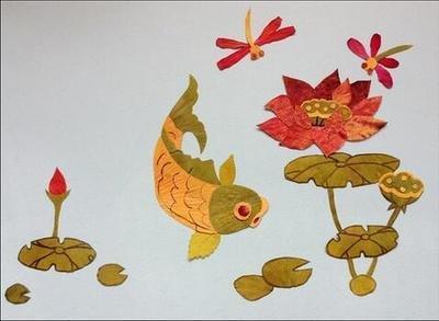 附保存方法:如要长期保存叶画,可在上面加一层玻璃纸,或用塑料薄膜也可以(但透明度不理想)。按我的方法,用透明胶带纸加牢,透明度还不错,也不用去过塑。我们还可以把叶画放在镜框中,然 后挂在墙上。一张美丽的叶画就做成了!