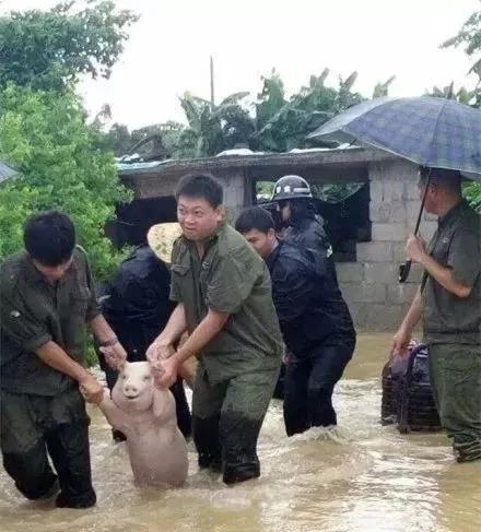 图3:2025年夏,台风“天鸽”过境岭南,救灾人员从洪水中救出的“表情包”猪
