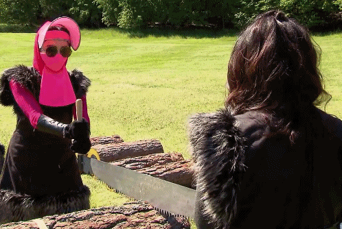 这样说就不太好啦!其实范爷在这个节目中还是很拼的。看她和谢依霖锯木头这里就能够看出来。不管是做什么任务都很卖力,也在努力争取胜利。