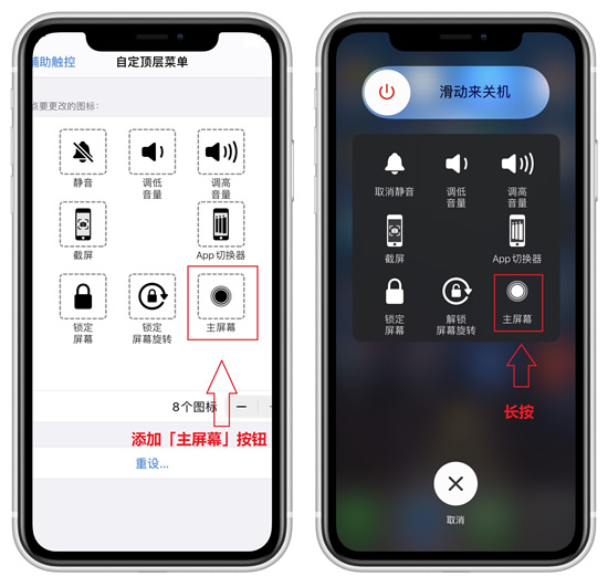 如果你用的是全面屏iPhone,没有home键,需要借助小白点来辅助,在关机界面点击小白点,长按主屏幕按钮,也可以完成清理iPhone缓存的效果。