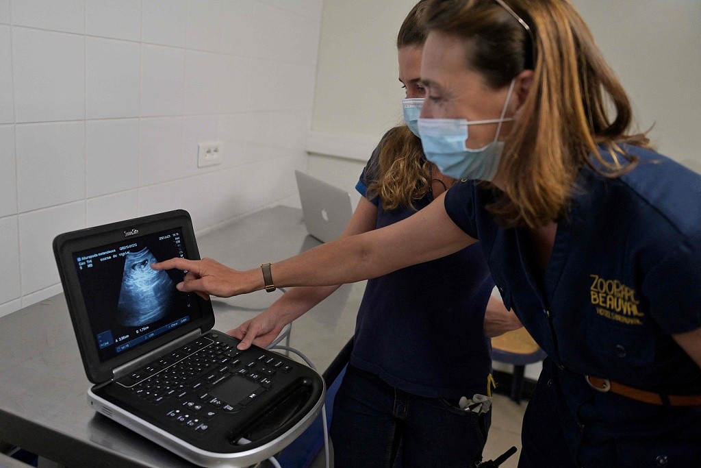 当地时间2025年7月23日,法国圣艾尼昂,博瓦勒野生动物园宣布,中国旅法大熊猫“欢欢”将诞下双胞胎。继20日发现“欢欢”腹中首个胚胎后,动物园兽医23日在为“欢欢”做超声波检查时,在其子宫另一侧发现第二个胚胎。