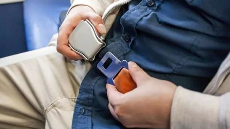 上飞机后,客舱乘务员会演示如何系好和解开安全带,应注意听和看。座椅背后的口袋里有安全须知卡,卡上有如何扣好安全带的说明。