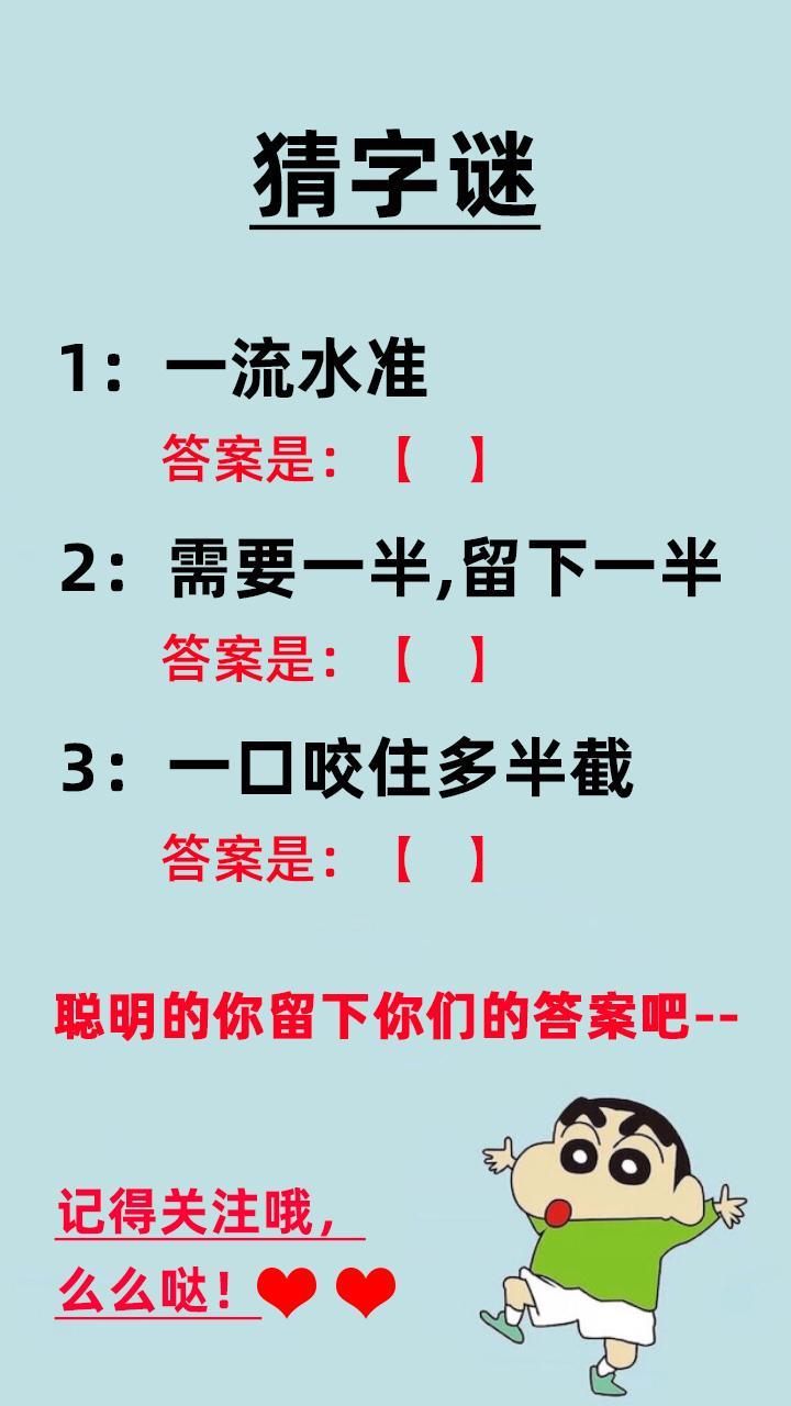 猜字谜:一流水准() 需要一半留下一半()一口咬住多半截()