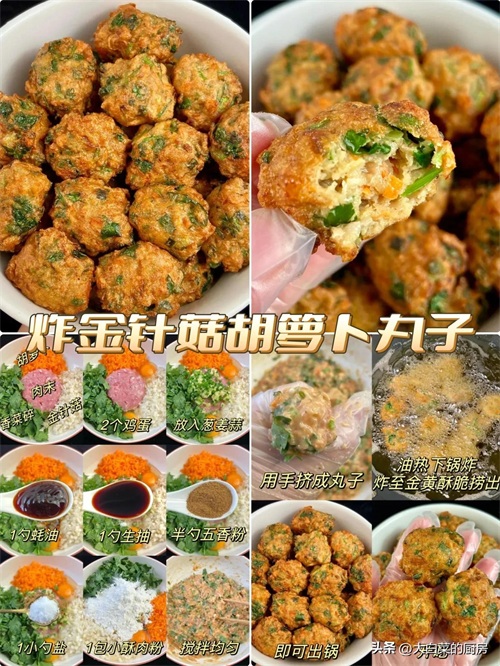 4:炸金针菇胡萝卜丸子