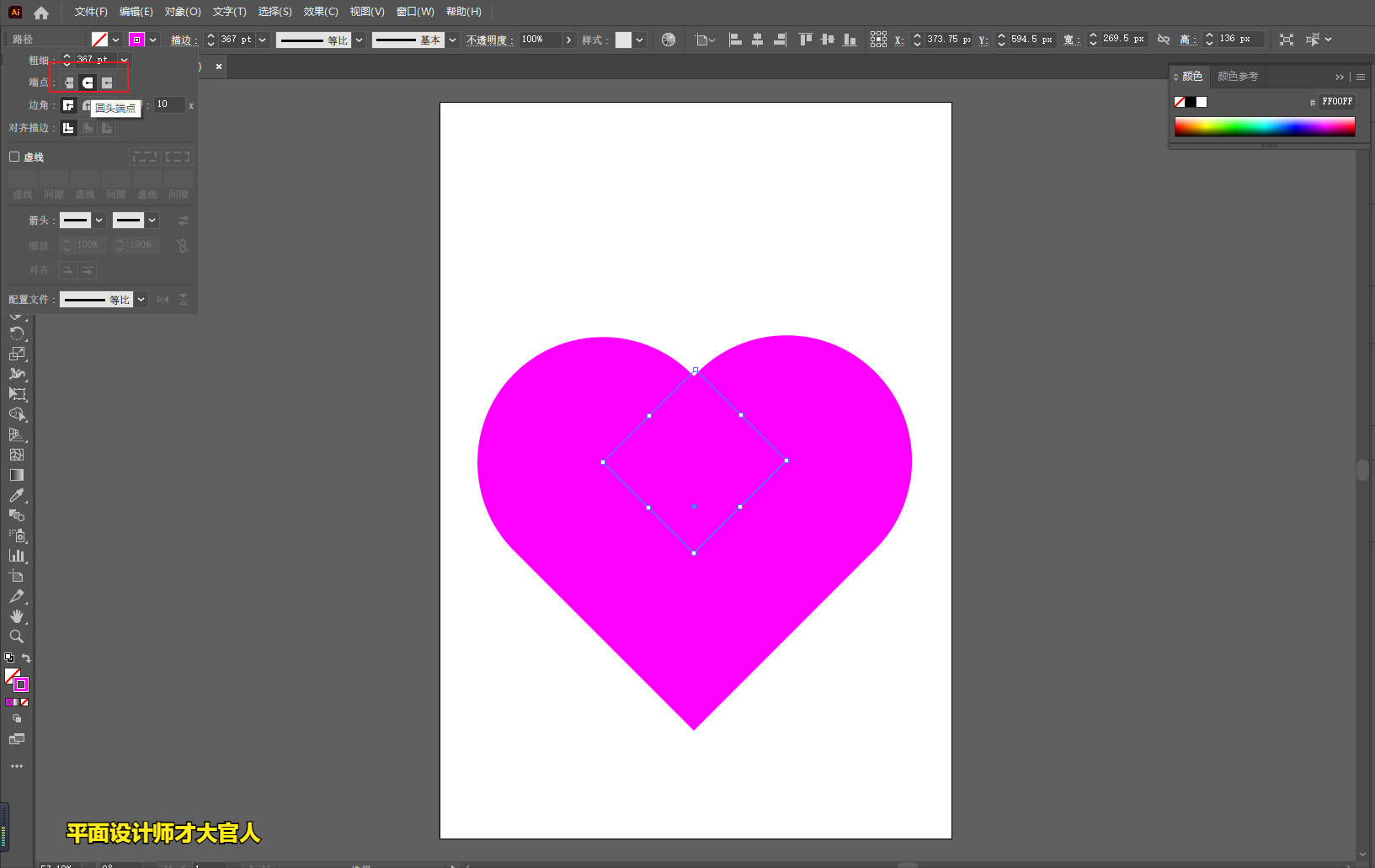 4、打开描边设置,选择【端点】改成【圆角】;