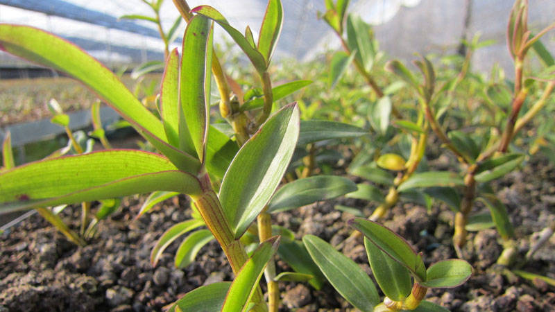 2、流苏石斛,又称马鞭石斛,生长于密林中树干上或山谷阴湿岩石上。目前主要用于药品原料和中医临床,产地很容易种植,其生长快,产量高。