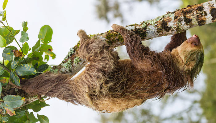 树懒是唯一身上长有植物的野生动物,它虽然有脚但是却不能走路,靠得是前肢拖动身体前行。所以它要移动2公里的距离,需要用时1个月。尽管如此,在水里它却是游泳健将,对于树懒来说最好的食物是低热量的树叶,吃上一点要用好几个小时来消化。