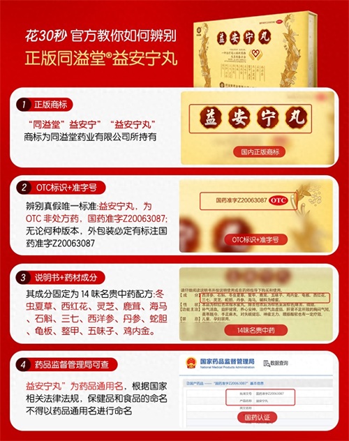 辨别真假唯一标准:益安宁丸,为OTC非处方药,国药准字Z20063087;无论何版本,外包装必有国药准字Z20063087。认准国药准字号便可事半功倍。