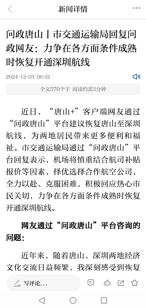 唐山市三女河机场即将改扩建,新建一个建筑面积20000平方米的航站楼,占地面积约600亩,今年或将开工,2030年取得适航权后将开通国际航线,2号航站楼成为国内候机楼,同时,也将新增B类机位,满足大型飞机起降,支撑大港口、环渤海大湾区、东北亚枢纽门户城市发展,巩固唐山市作为京津冀重要的中心城市、全国性综合交通枢纽城市的地位。