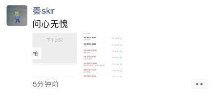 随后,有网友曝光了坤音娱乐老板秦周懿的朋友圈,秦周懿发朋友圈称“问心无愧”,同时晒出与卜凡(黑色头像)的聊天记录以及自己接到骚扰电话的截图。