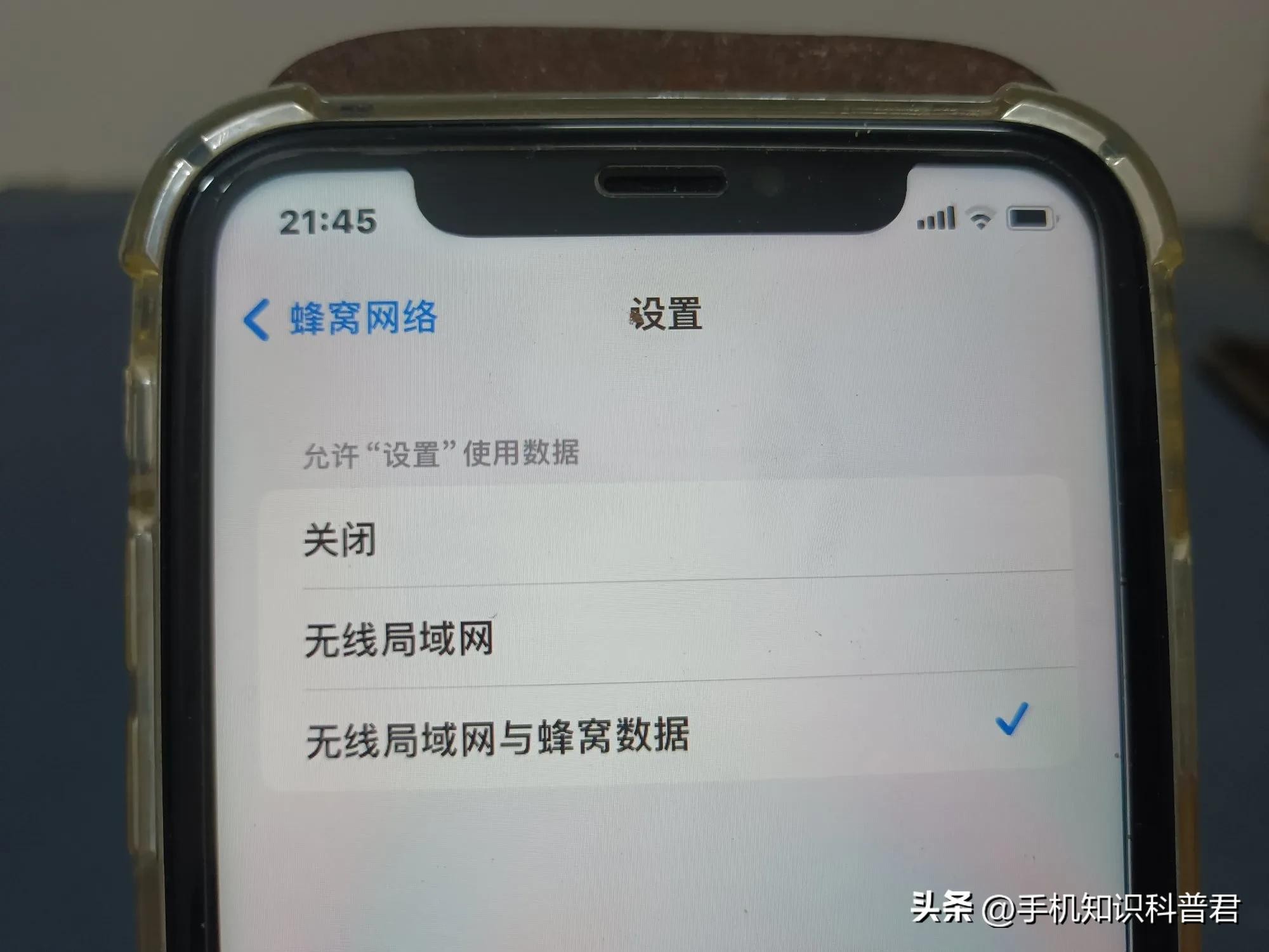 在这里可以看到,默认设置是允许同时使用无线局域网与蜂窝网络的,只需将其关闭,选择“不允许”,ISO 就无法继续更新。这是一种双保险方法,(如上图所示)