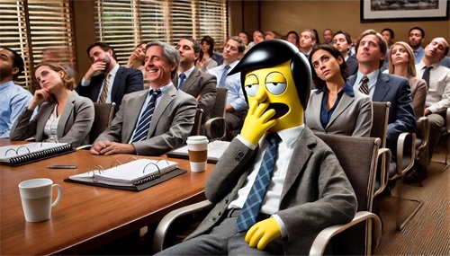 Bob坐在会议上,试图抑制住一个哈欠,因为演讲持续了太久。尽管他努力了,但还是忍不住打了一个哈欠,引来了同事们的几道目光。他感到有些尴尬,但也松了一口气,心想:“也许我应该多喝一杯咖啡。”