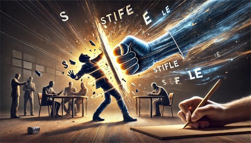 stif + le:组合起来,可以联想到“通过填塞或堵住来压制某物的行动”,因此有“抑制、压制或使窒息”的意思。