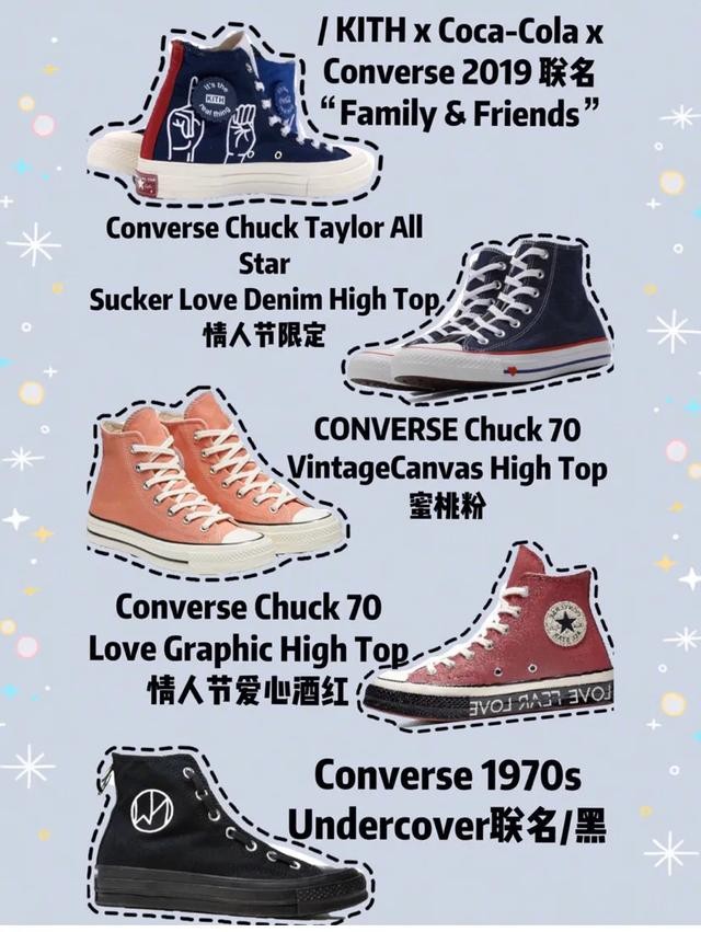 匡威情人节 限定款太优秀了真的是各种款式各 种颜色任你选择鞋边设计带了小爱心标志和鞋底也有爱心图案太少女心了叭!