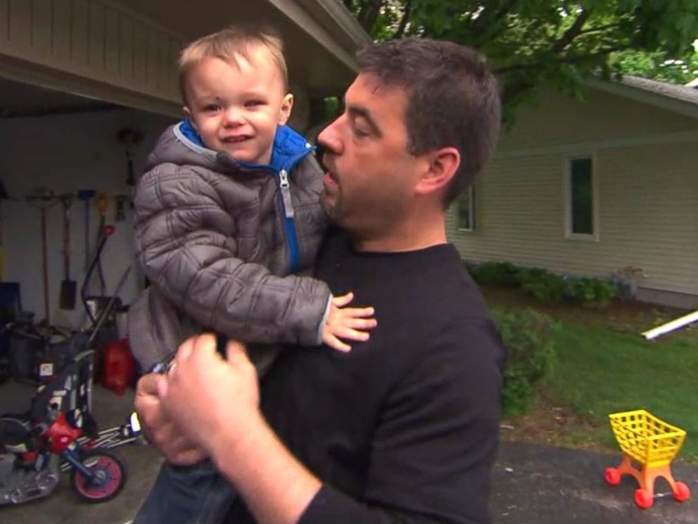 这个英国小男孩今年两岁,一直以来有着一个快乐的家庭。图中他哥哥在陪他玩耍。