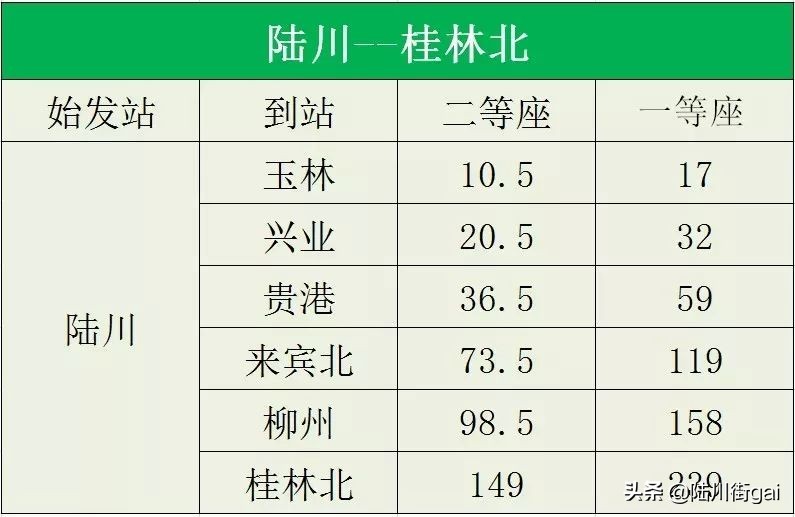陆川至桂林北票价