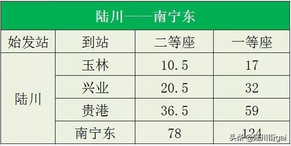 陆川至南宁东票价