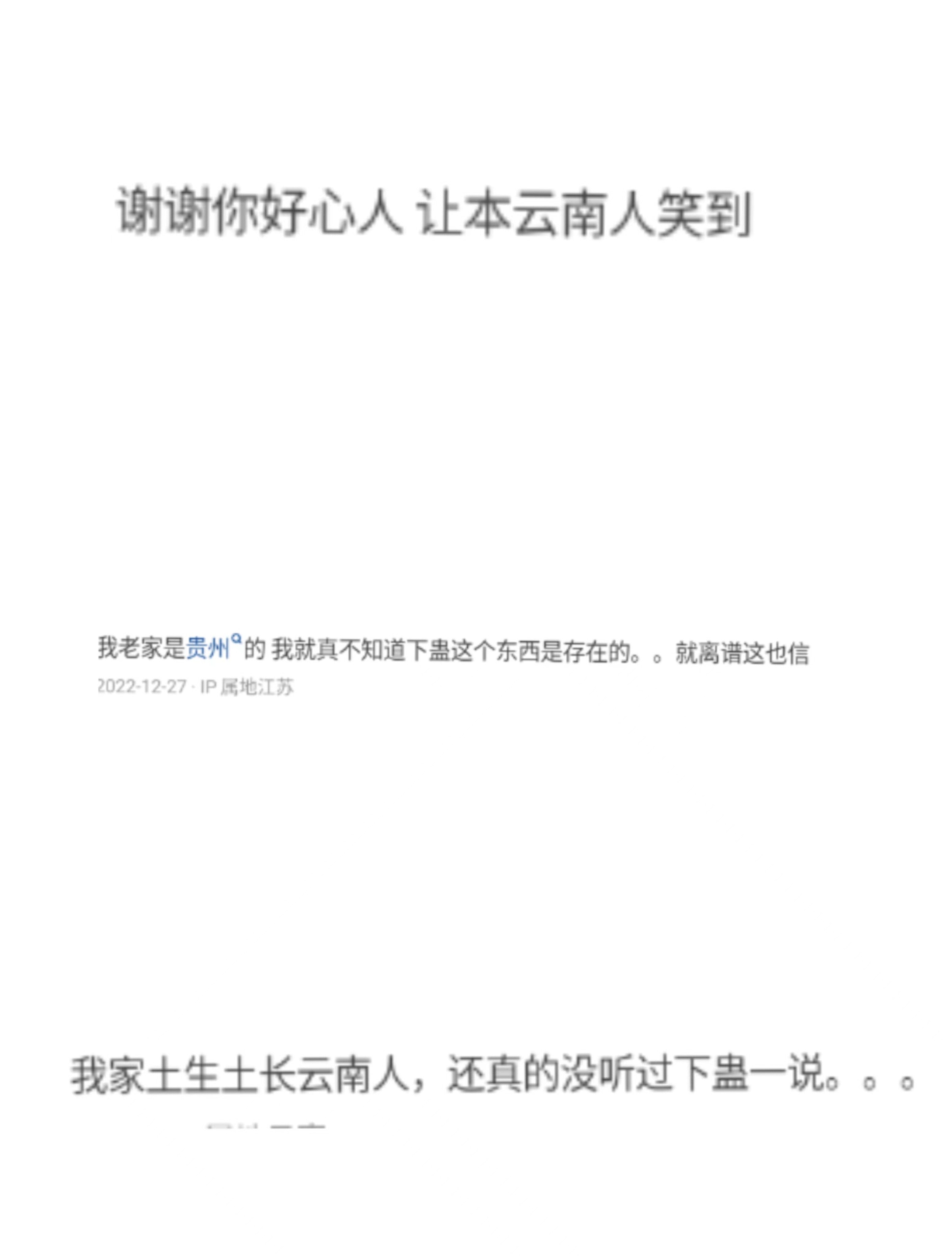 我老家是贵州“的我就真不知道下蛊这个东西是存在的。。就离谱这也信