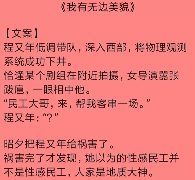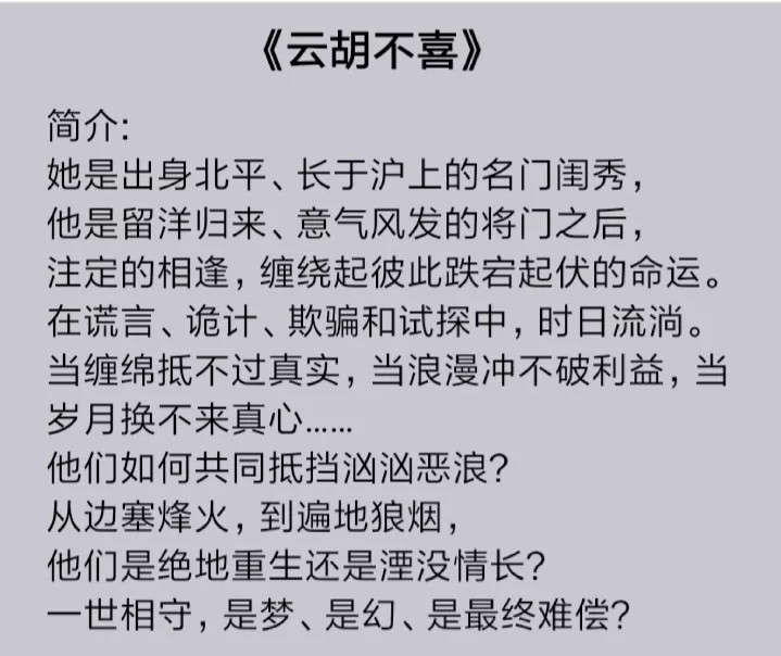 推荐理由:民国文,我心中的top1,代入感特别强,大概是和卡卡娓娓道来的文笔有关,作者很厉害,很小的配角小人物(番外人物)在前面几章就开始铺垫了,竟然也可以在后面联系起来,特别厉害,看完第一遍的感觉就平平淡淡有点肝疼(被骧哥儿的静漪气的)看第二遍呢,就能看出她们打哑谜的谜底,多少猜出一点点吧,第三遍就开始可以捋清楚其中关系和人物情感了。