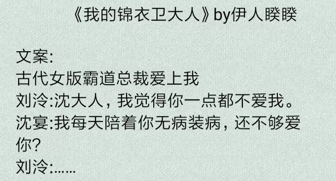 推荐理由:古代女版霸道总裁爱上我x锦衣卫大人 超级好看!!!有时候就喜欢这种时不时作一下的戏精女主,轻松搞笑,男主傲娇沈美人配合女主~哈哈哈