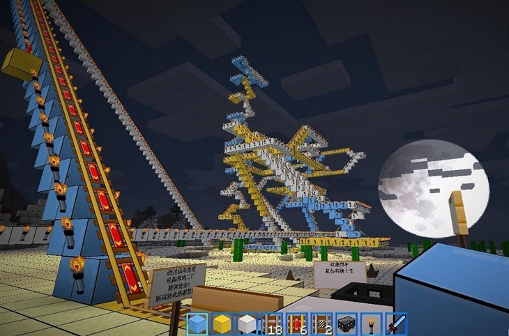 从视频来看,该版本不仅有和我的世界相同的建造功能,而且相对来说更为强大,甚至具备了智能复制的能力,让建造过山车的过程简单了不少,我们甚至还能尝试坐在建好了的过山车上,看起来十分有趣。■