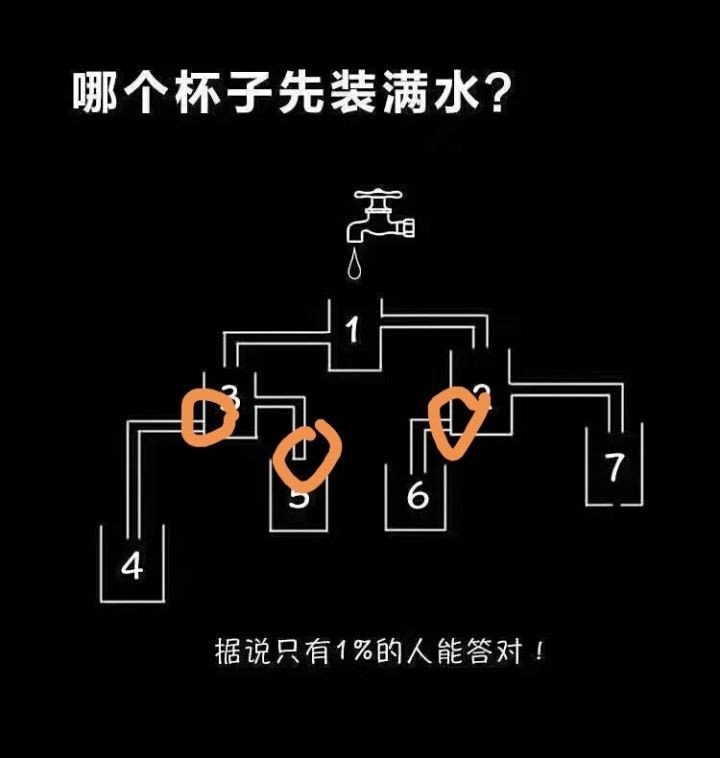 图中哪个杯子先装满水?据说只有1%的能答对!