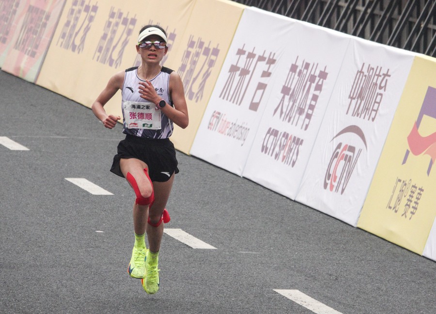 3月24日,张德顺在比赛中。最终,她以2小时27分12秒的成绩获得全国马拉松锦标赛(第一站)女子组第一名。 新华社记者 杨磊 摄