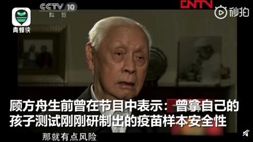 1月2日,我国著名病毒学专家顾方舟去世,享年92岁。顾方舟研究脊髓灰质炎(小儿麻痹症)预防及控制40多年。顾方舟生前曾在节目中表示:刚刚研制出的疫苗样本,自己和同事们首先把疫苗服用了下去,经过观察期以后一切正常。但在儿童的身上去顶安全性时。决定拿自己的孩子来测试疫苗的安全性。顾方舟把疫苗给自己的儿子喂服了。