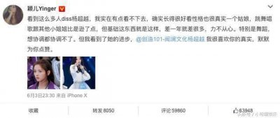- 杨超越公司回应“翻白眼”是因为隐形眼镜?淘汰选手发文力挺超越 上周《创造101》播出后,因为杨超越取得第二名发布的“霸气”宣言而遭到了不少网友的diss,甚至有部分人用一些...