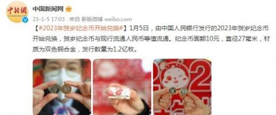 - 2023年贺岁纪念币开始兑换 来源:中国新闻网 1月5日,由中国人民银行发行的2023年贺岁纪念币开始兑换,贺岁纪念币与现行流通人民币等值流通。纪念币面额10元,直径27毫米,材质为双...