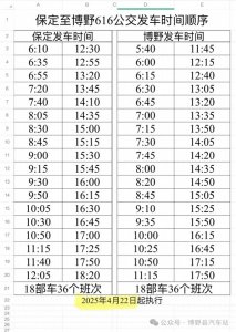 - 博野县616路公交车停靠站点、发车时间... 【来源:博野融媒】 特别提醒: 线路信息变更调整请及时关注“博野县汽车站”公众号。 博野—保定,首末班车时间:05:40-17:50 保定 —博野...